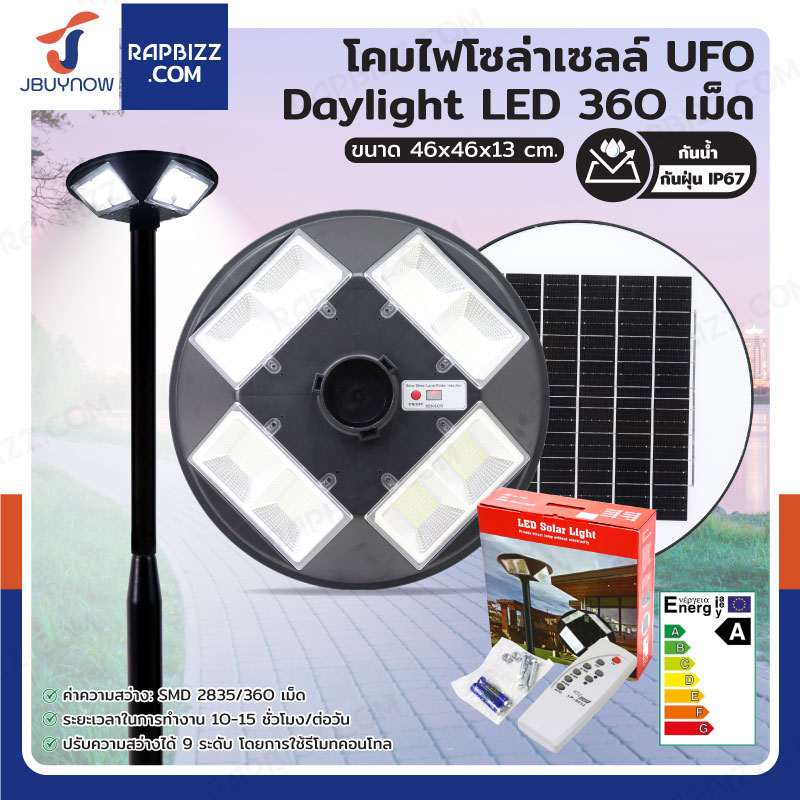 โคมไฟโซล่าเซลล์ UFO Daylight LED 360 เม็ด พลังงานแสงอาทิตย์ IP67