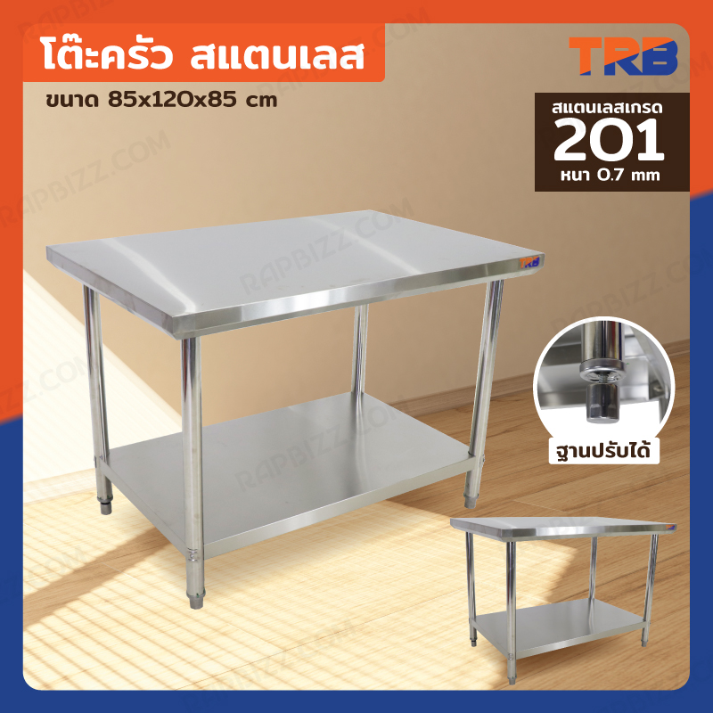 โต๊ะครัว ชั้นวาง สแตนเลส 85x120x85 cm