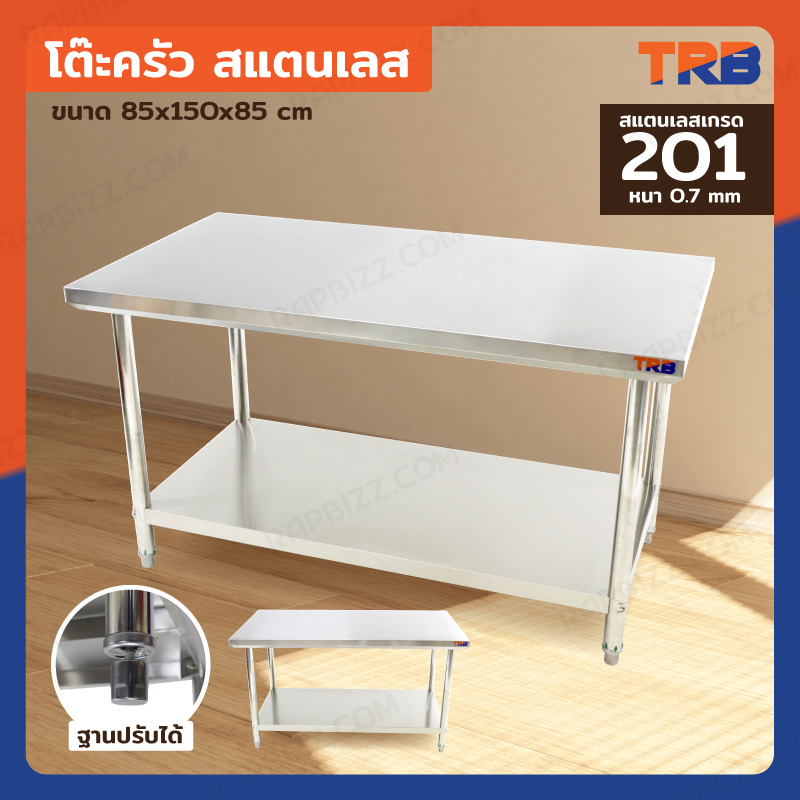 โต๊ะครัว ชั้นวาง สแตนเลส 85x150x85 cm