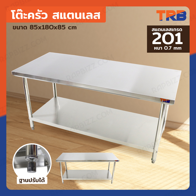 โต๊ะครัว ชั้นวาง สแตนเลส 85x180x85 cm