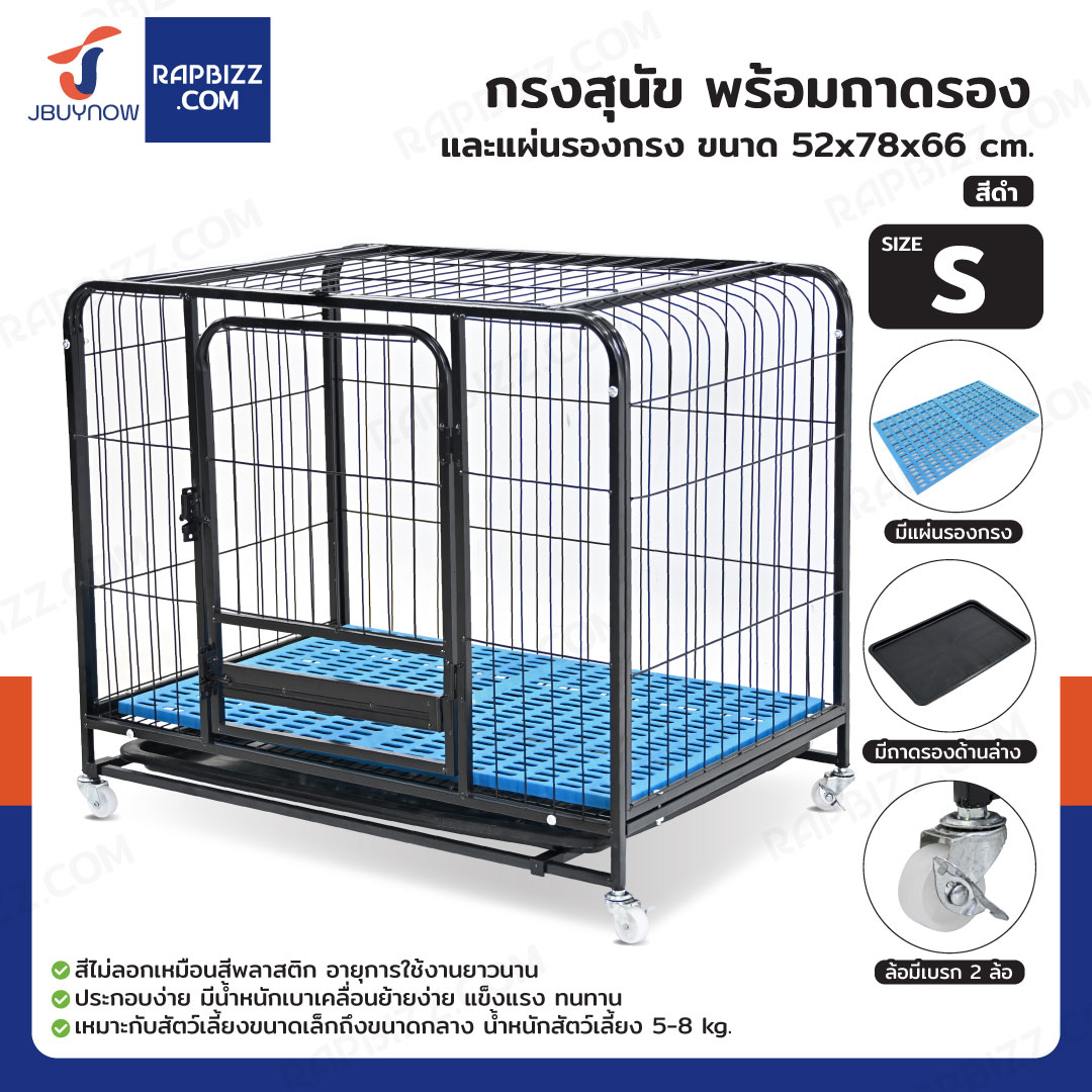 กรงสุนัข กรงสัตว์เลี้ยง พร้อมถาดรองและล้อ Size S 52x78x66 cm สีดำ