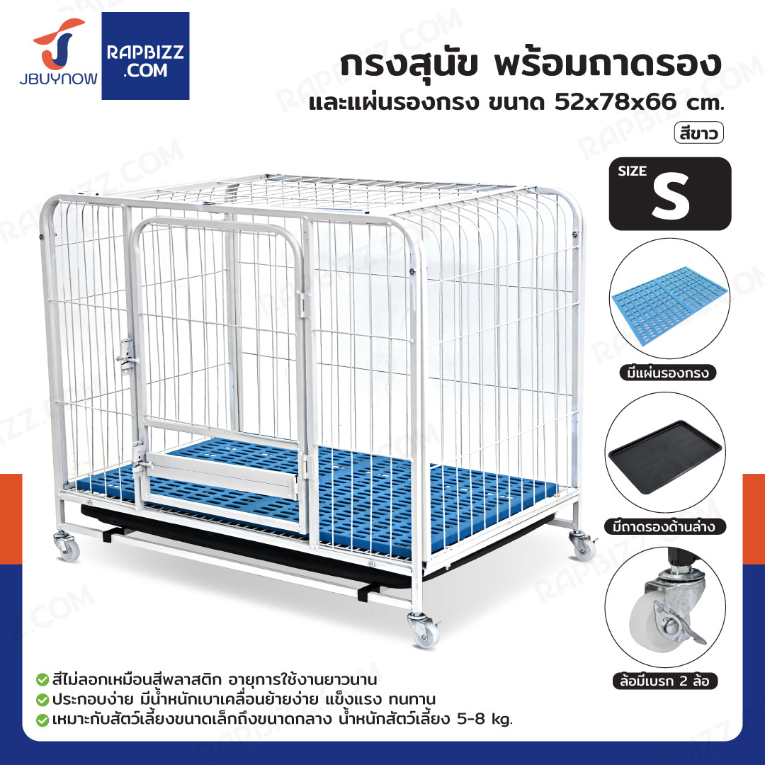กรงสุนัข กรงสัตว์เลี้ยง พร้อมถาดและแผ่นรองกรง Size S 52x78x66 cm สีขาว