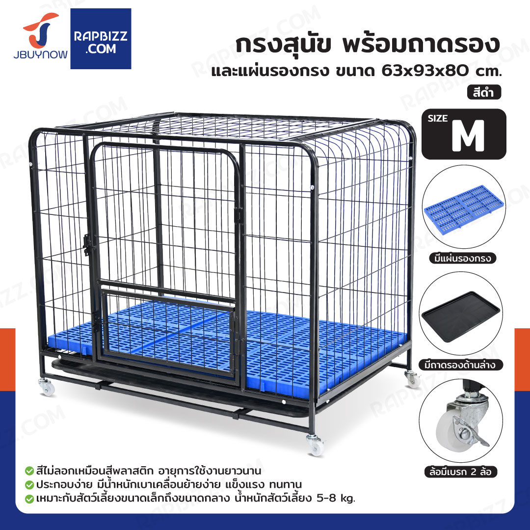 กรงสุนัข กรงสัตว์เลี้ยง พร้อมถาดและแผ่นรองกรง Size M 63x93x80 cm สีดำ