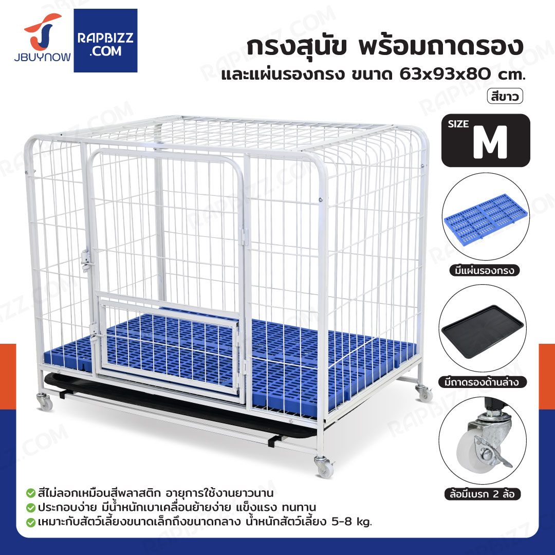 กรงสุนัข กรงสัตว์เลี้ยง พร้อมถาดและแผ่นรองกรง Size M 63x93x80 cm สีขาว