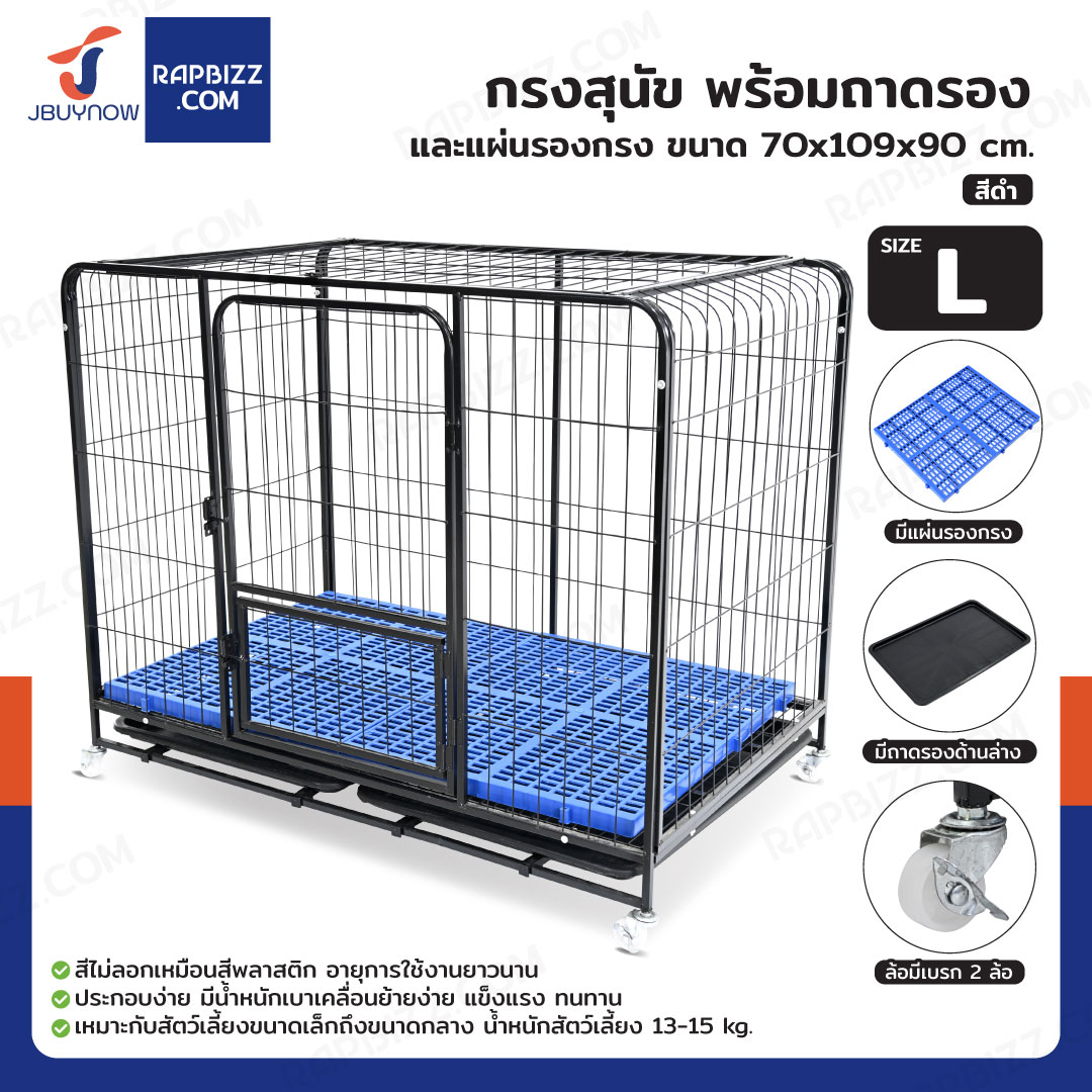 กรงสุนัข กรงสัตว์เลี้ยง พร้อมถาดและแผ่นรองกรง Size L 70x109x90 cm สีดำ