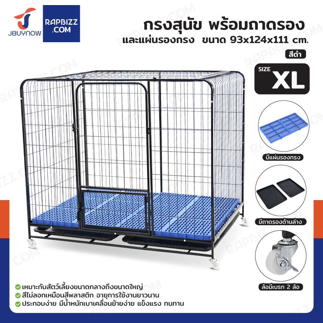 กรงสุนัข กรงสัตว์เลี้ยง พร้อมถาดและแผ่นรองกรง Size XL 93x124x111 cm สีดำ
