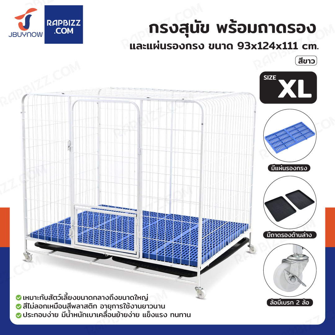 กรงสุนัข กรงสัตว์เลี้ยง พร้อมถาดและแผ่นรองกรง Size XL 93x124x111 cm สีขาว