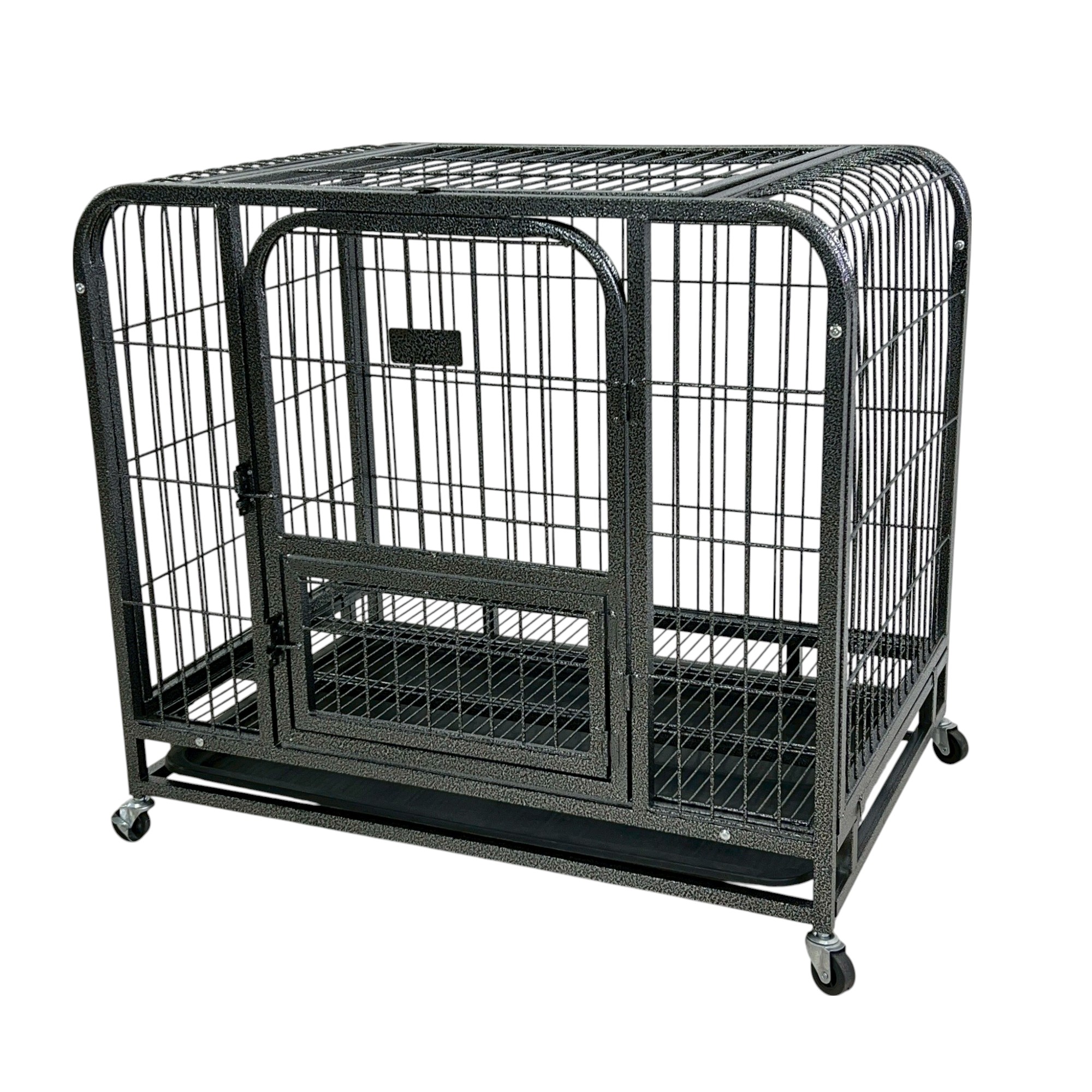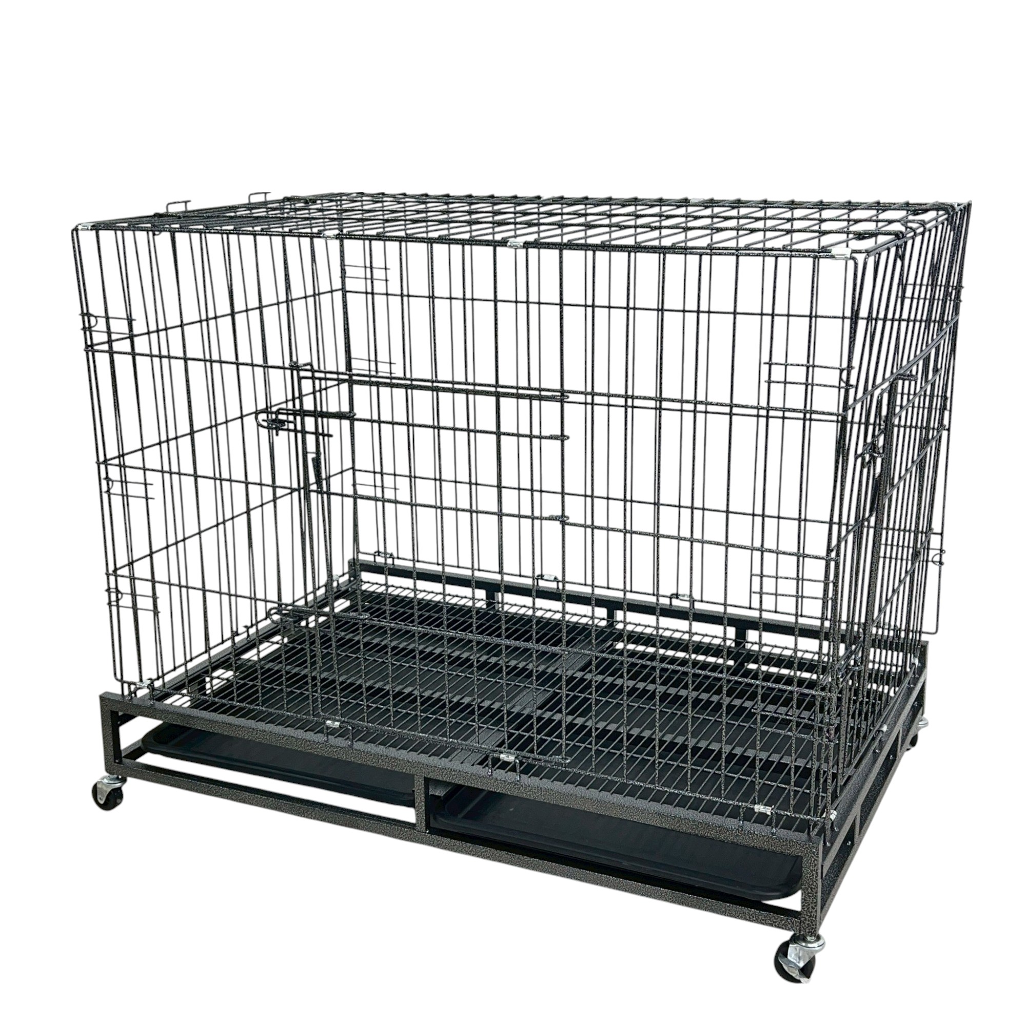 กรงสุนัข กรงสัตว์เลี้ยง พร้อมล้อและถาดรอง 68x110x90 cm สีดำ SAMPLE-110