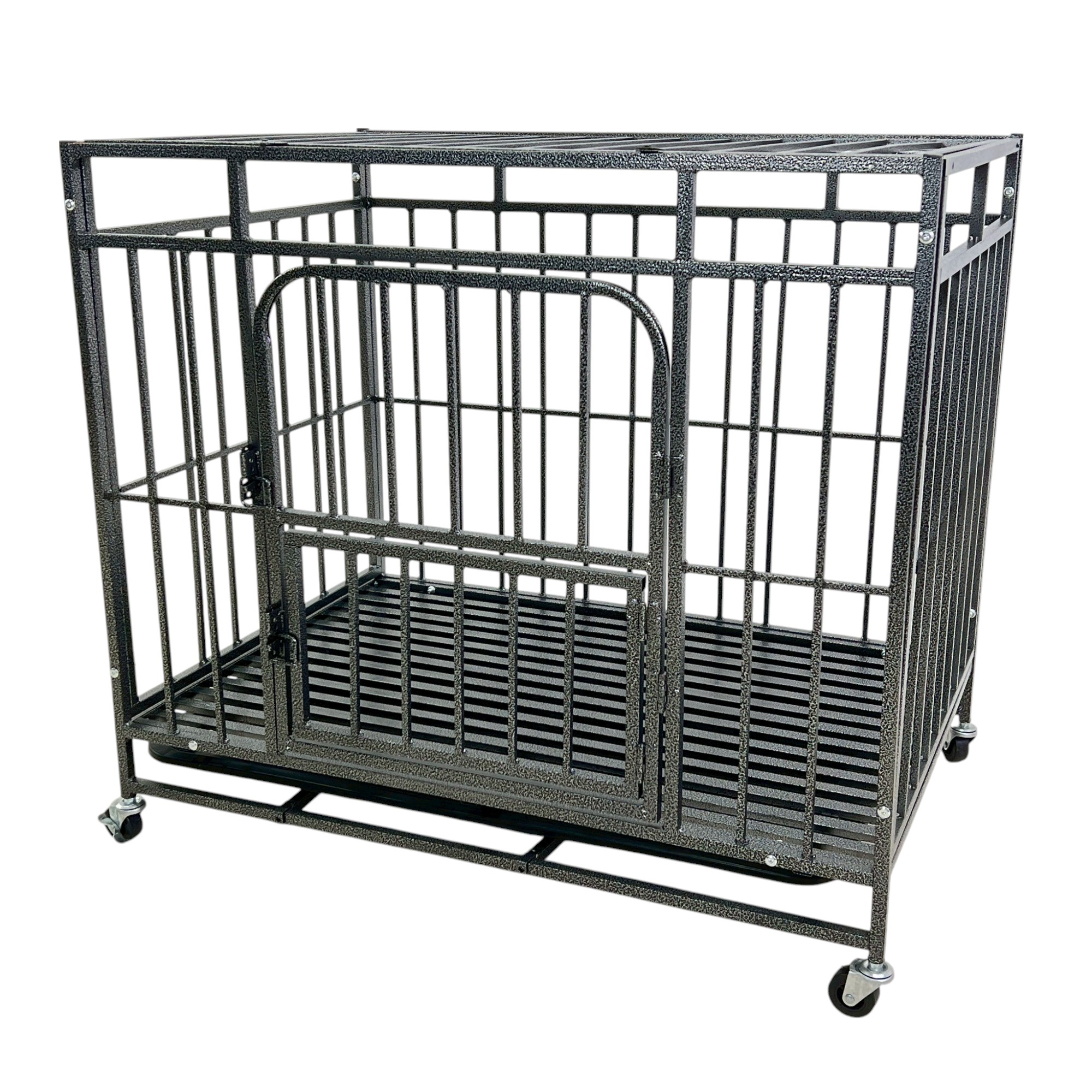 กรงสุนัข กรงสัตว์เลี้ยง รุ่นเหล็กกล่อง พร้อมล้อและถาดรอง Size L 71x108x92 cm สีดำเทา
