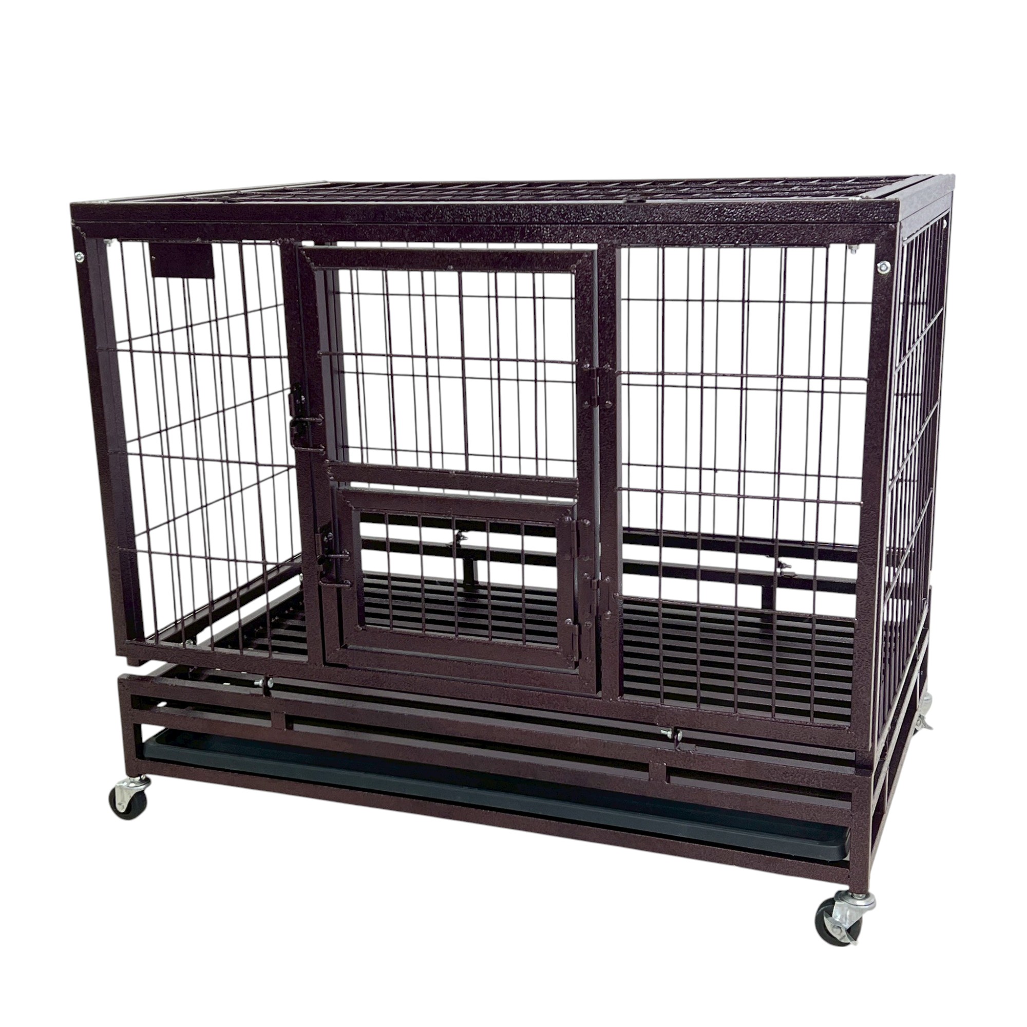 กรงสุนัข กรงสัตว์เลี้ยง พร้อมล้อและถาดรอง 62x94x79 cm สีน้ำตาลเข้ม SAMPLE-930