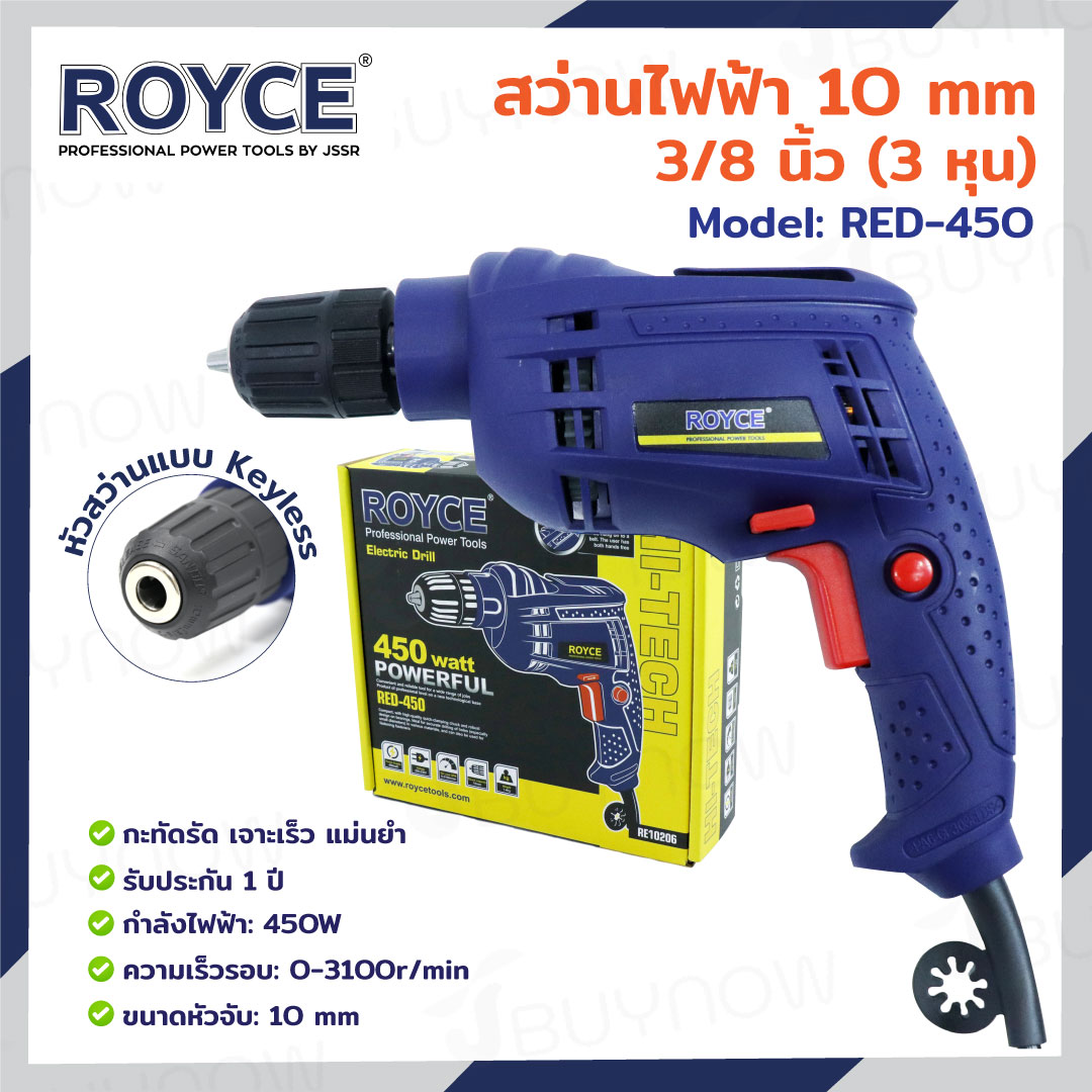 ROYCE สว่านไฟฟ้า 10mm 450W RED-450