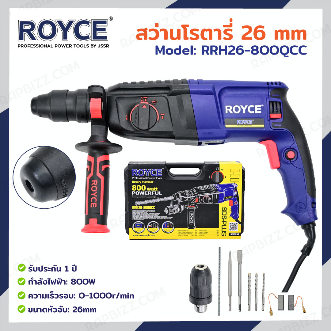ROYCE สว่านโรตารี่ 26mm 800W RRH26-800QCC