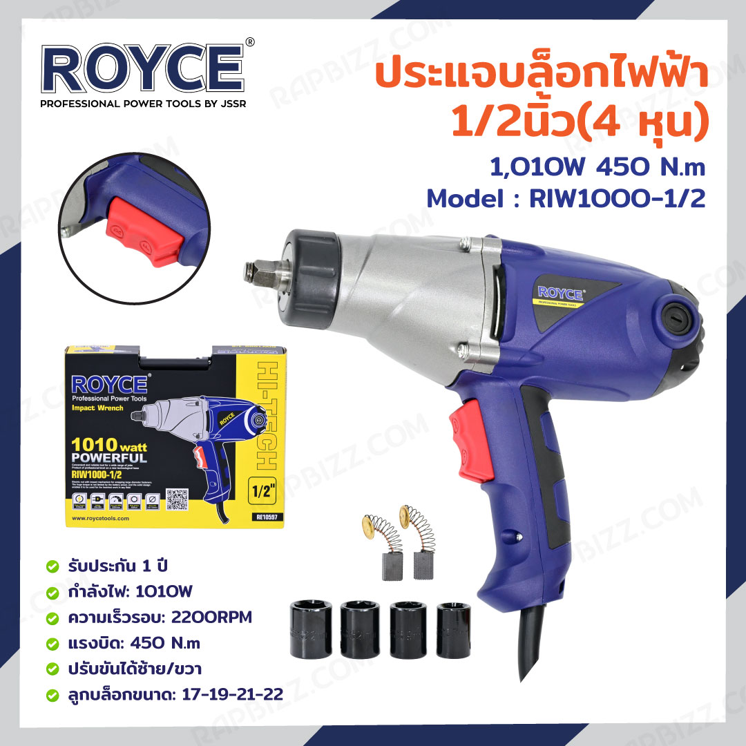 ROYCE ประแจบล็อกไฟฟ้า 1/2 นิ้ว (4 หุน) 1010W RIW1000-1/2