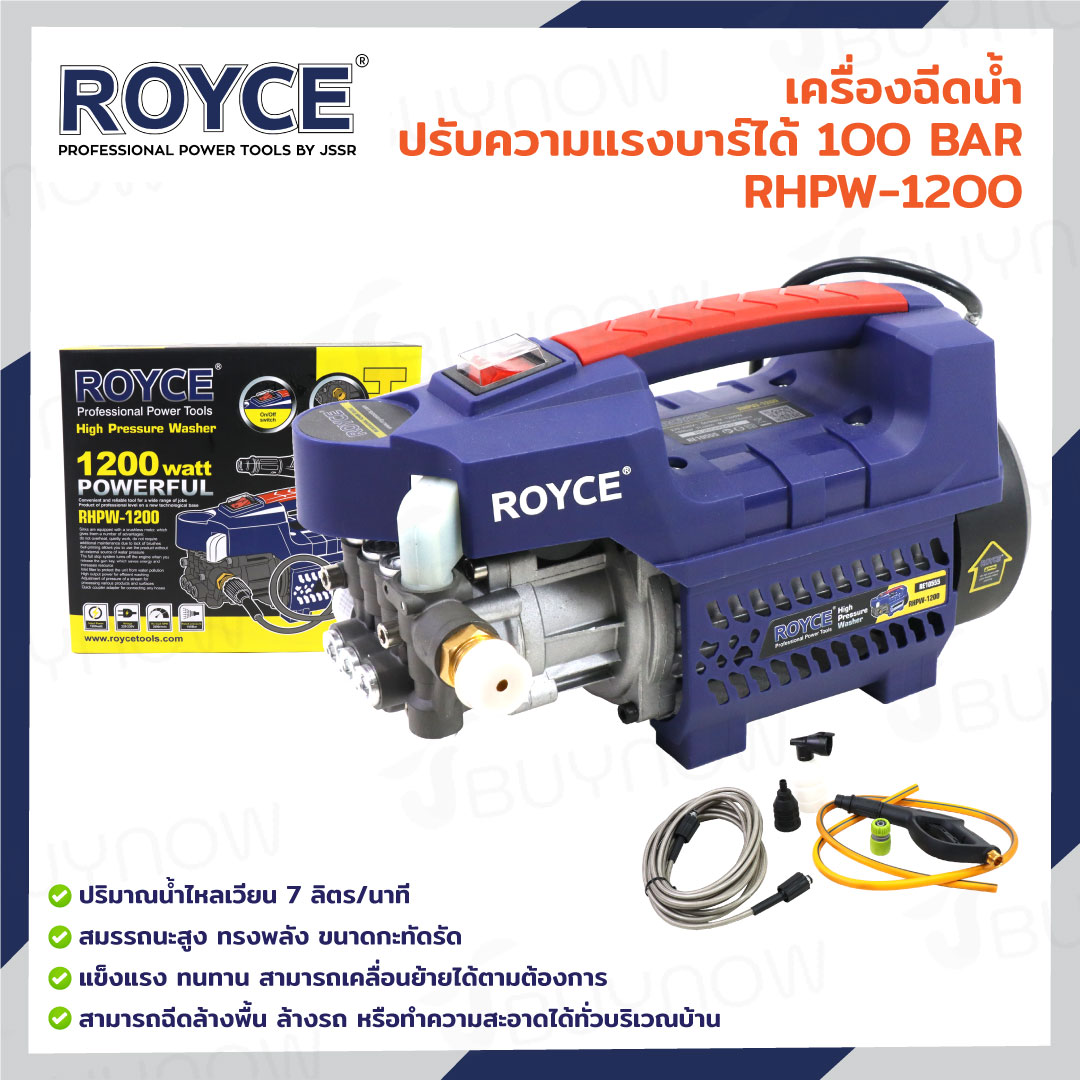 ROYCE เครื่องฉีดน้ำปรับความแรงบาร์ได้ 100Bar 1200W RHPW-1200