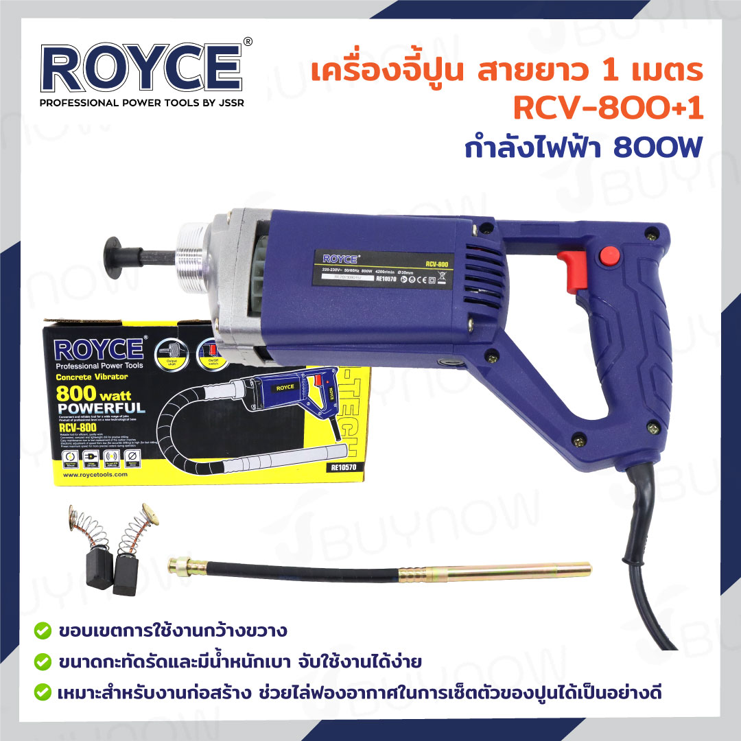 เครื่องจี้ปูน เครื่องสั่นคอนกรีต สาย 1 เมตร 800W JBUYNOW ROYCE RCV-800+1