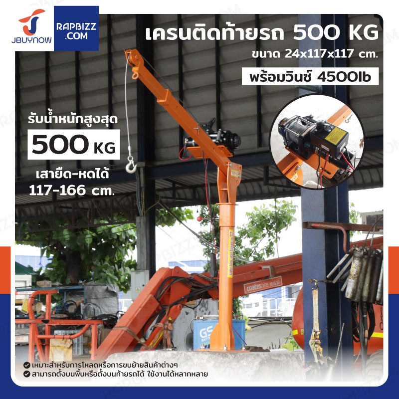 มินิเครน 500 kg สำหรับติดท้ายรถ พร้อมวินซ์ 4500lb/2 ตัน