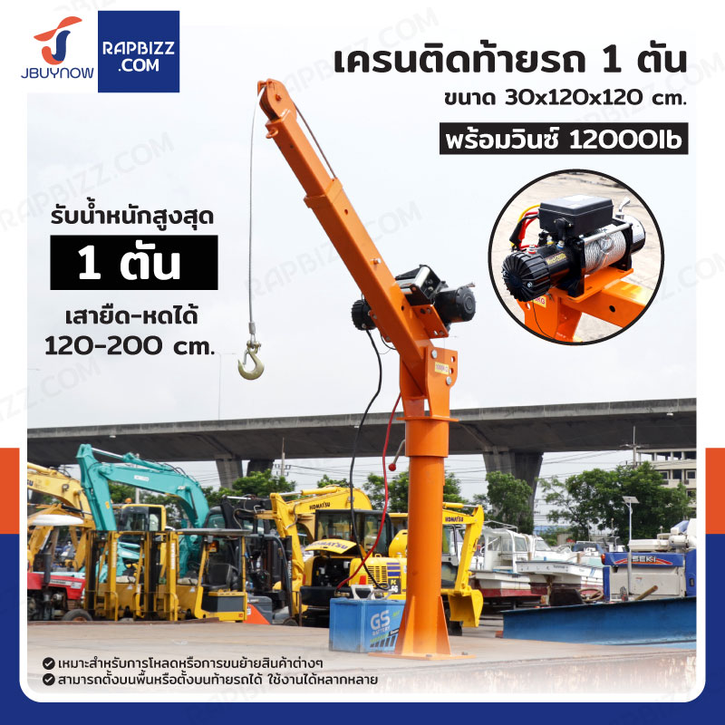 มินิเครน 1 ตัน สำหรับติดท้ายรถ พร้อมวินซ์ 12000lb/5.4 ตัน