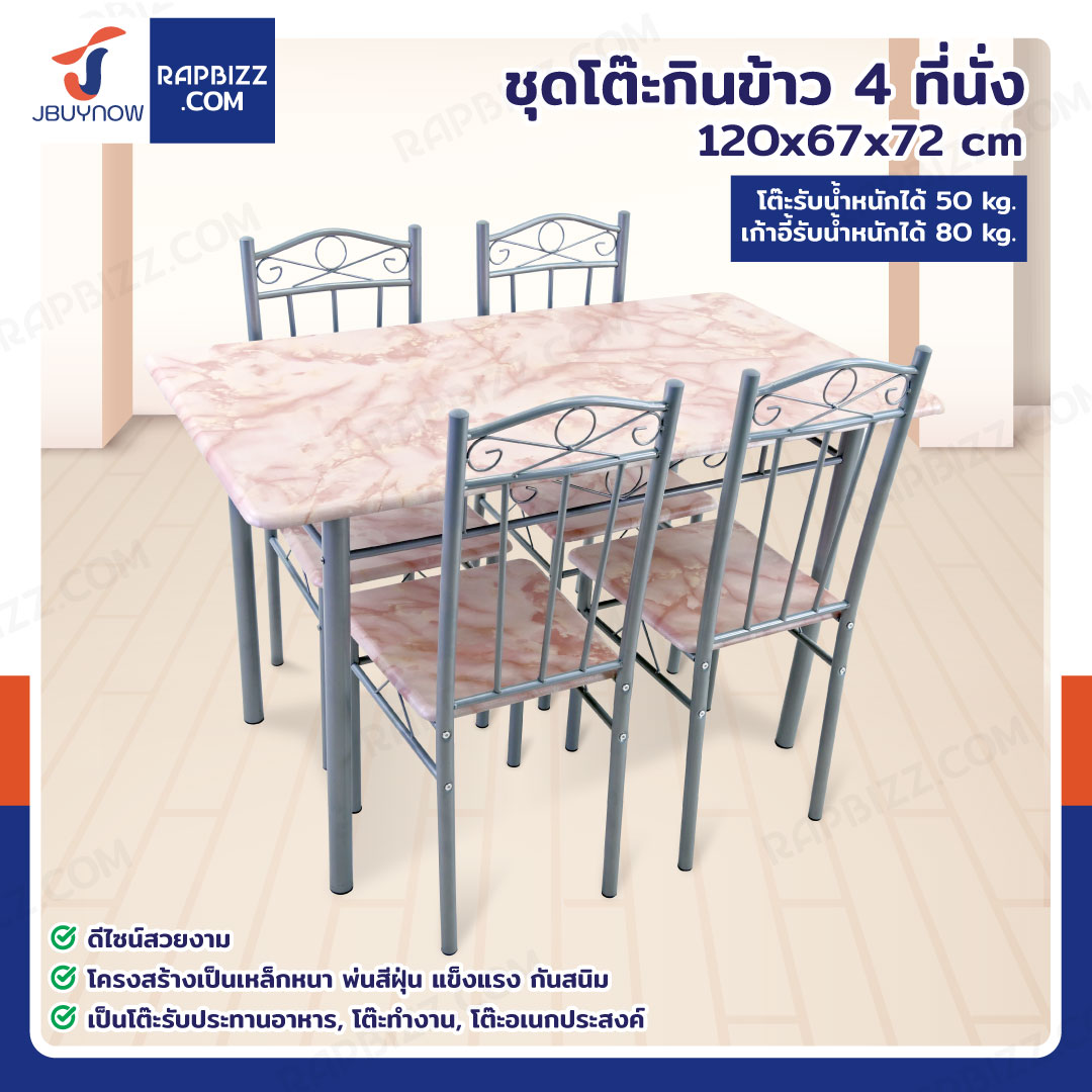 ชุดโต๊ะรับประทานอาหาร โต๊ะกินข้าว 4 ที่นั่ง 120x67x72 ซม.1202-15S