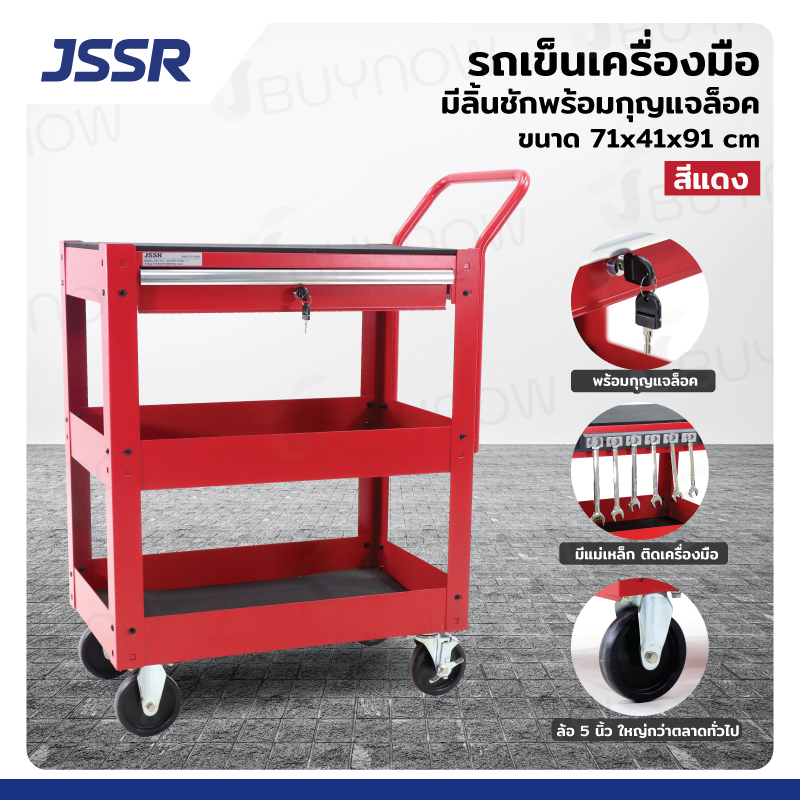 รถเข็นเครื่องมือช่าง ชั้นวางเครื่องมือ 3 ชั้น 36x76x78 ซม. สีแดง JBUYNOW JSSR