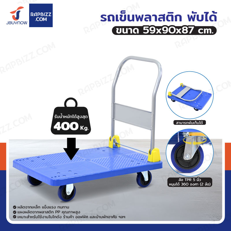 รถเข็นพลาสติก พับได้ 59x90x87 cm ล้อ TPR 5 นิ้ว รับน้ำหนัก 400 KG