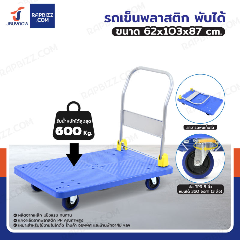 รถเข็นพลาสติก พับได้ 62x103x87 cm ล้อ TPR 5 นิ้ว รับน้ำหนัก 600 KG