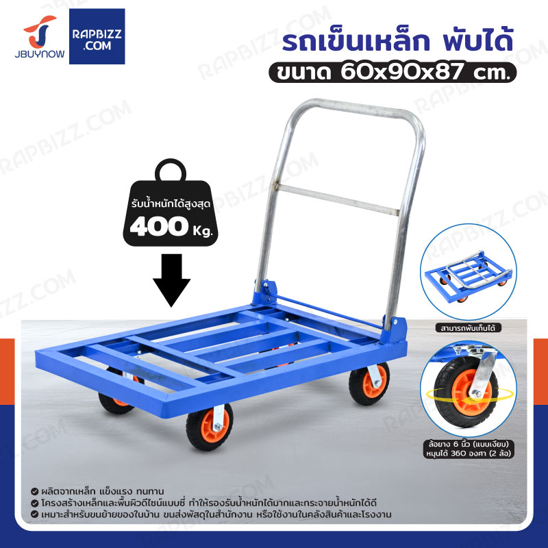 รถเข็นเหล็ก มุมเหลี่ยม พับได้ 60x90x87 CM ล้อยาง 6 นิ้ว รับน้ำหนัก 400 KG