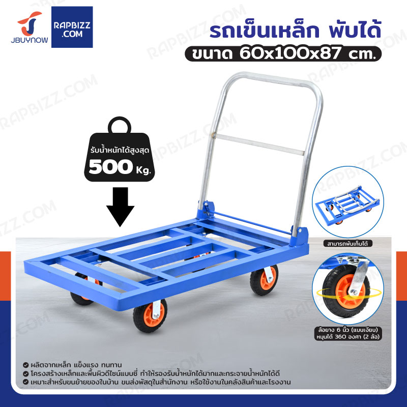 รถเข็นเหล็ก มุมเหลี่ยม พับได้ 60x100x87 CM ล้อยาง 6 นิ้ว รับน้ำหนัก 500 KG