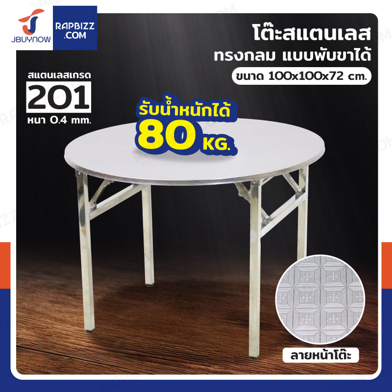 โต๊ะสแตนเลส201 ทรงกลม พับขาได้ แบบหน้าโต๊ะมีลาย 100x100x72 cm
