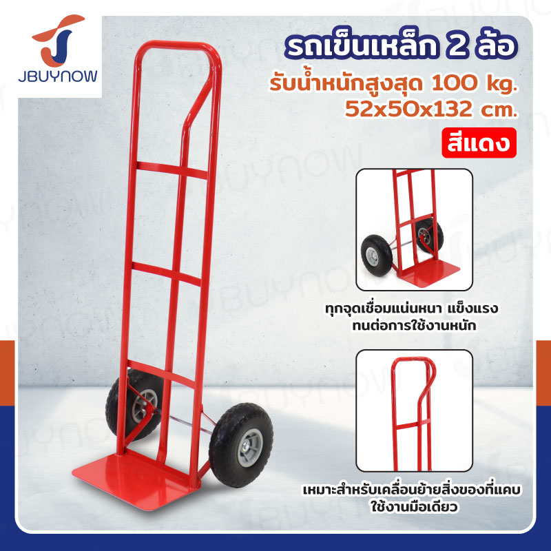 รถเข็นเหล็ก รถเข็นของ 2 ล้อ ทางแคบ หลังตรง 52x50x132 ซม. สีแดง JBUYNOW HT1805