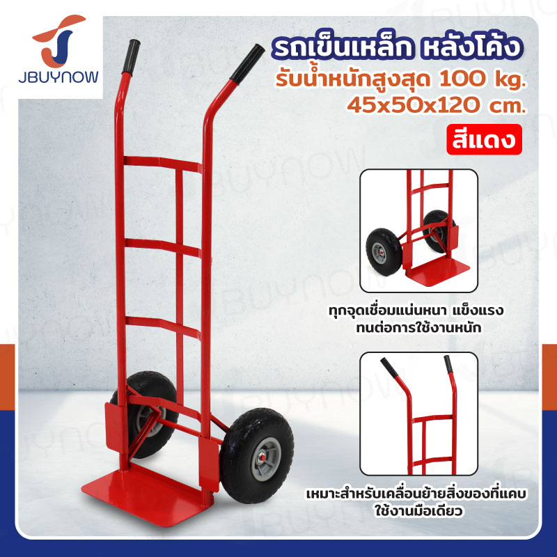 รถเข็นเหล็ก รถเข็นของตลาด หลังโค้ง 45x50x120 ซม. สีแดง JBUYNOW HT1830