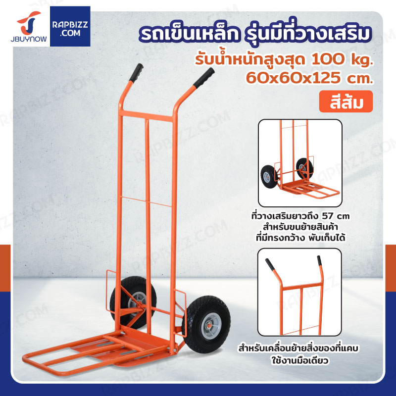 รถเข็นเหล็ก รถเข็นของตลาด 60x60x125 ซม. สีส้ม รุ่นมีที่วางเสริม JBUYNOW HT1805