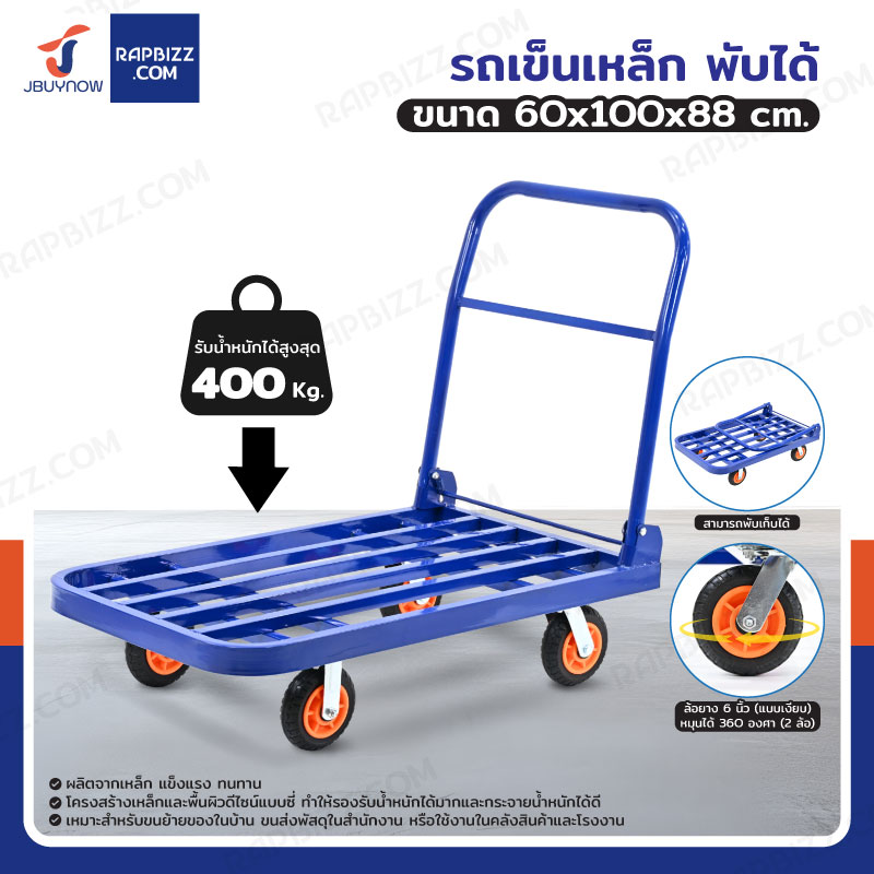 รถเข็นเหล็ก มุมโค้ง พับได้ 60x100x88 CM ล้อยาง 6 นิ้ว รับน้ำหนัก 400 KG