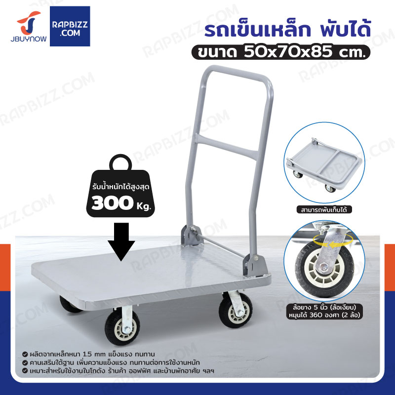 รถเข็นเหล็กอเนกประสงค์ พับได้ 50x70x85 cm ล้อยาง 5 นิ้ว รับน้ำหนัก 300 KG