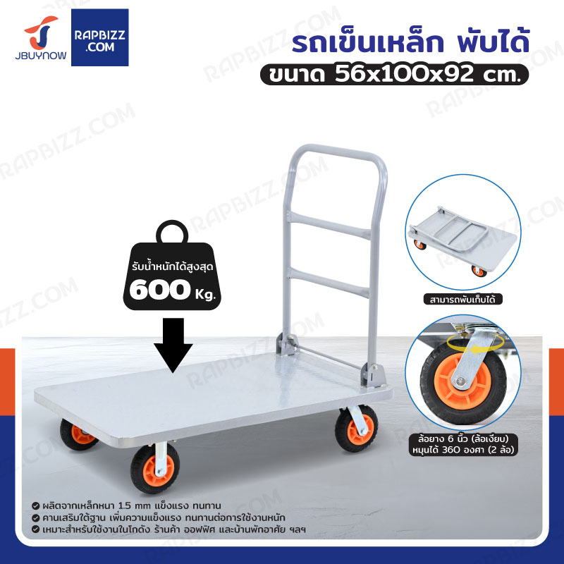 รถเข็นเหล็กอเนกประสงค์ พับได้ 56x100x92 cm ล้อยาง 6 นิ้ว รับน้ำหนัก 600 KG