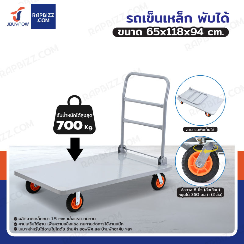 รถเข็นเหล็กอเนกประสงค์ พับได้ 65x118x94 cm ล้อยาง 6 นิ้ว รับน้ำหนัก 700 KG