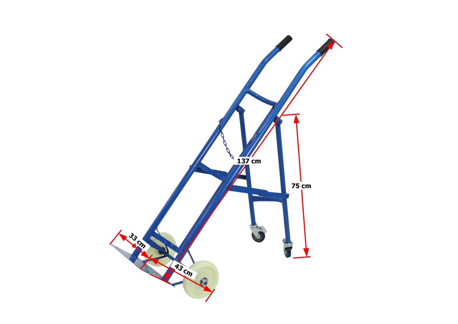 รถเข็นเหล็ก รถเข็นถัง ล้อไนล่อน 7 นิ้ว แบบมีล้อเสริม รับน้ำหนักได้ 200 กก. 40x43x137 CM สีน้ำเงิน