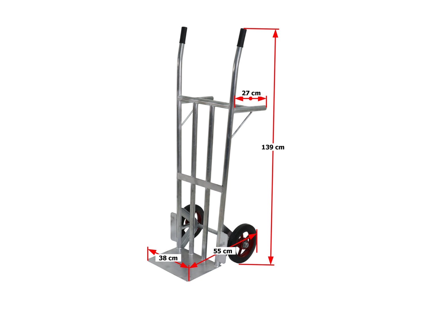 รถเข็นเหล็ก รถเข็นของ 2 ล้อ ล้อยางกระทะเหล็ก 10 นิ้ว รับน้ำหนักได้ 250 กก. 49x55x139 CM สีเงิน
