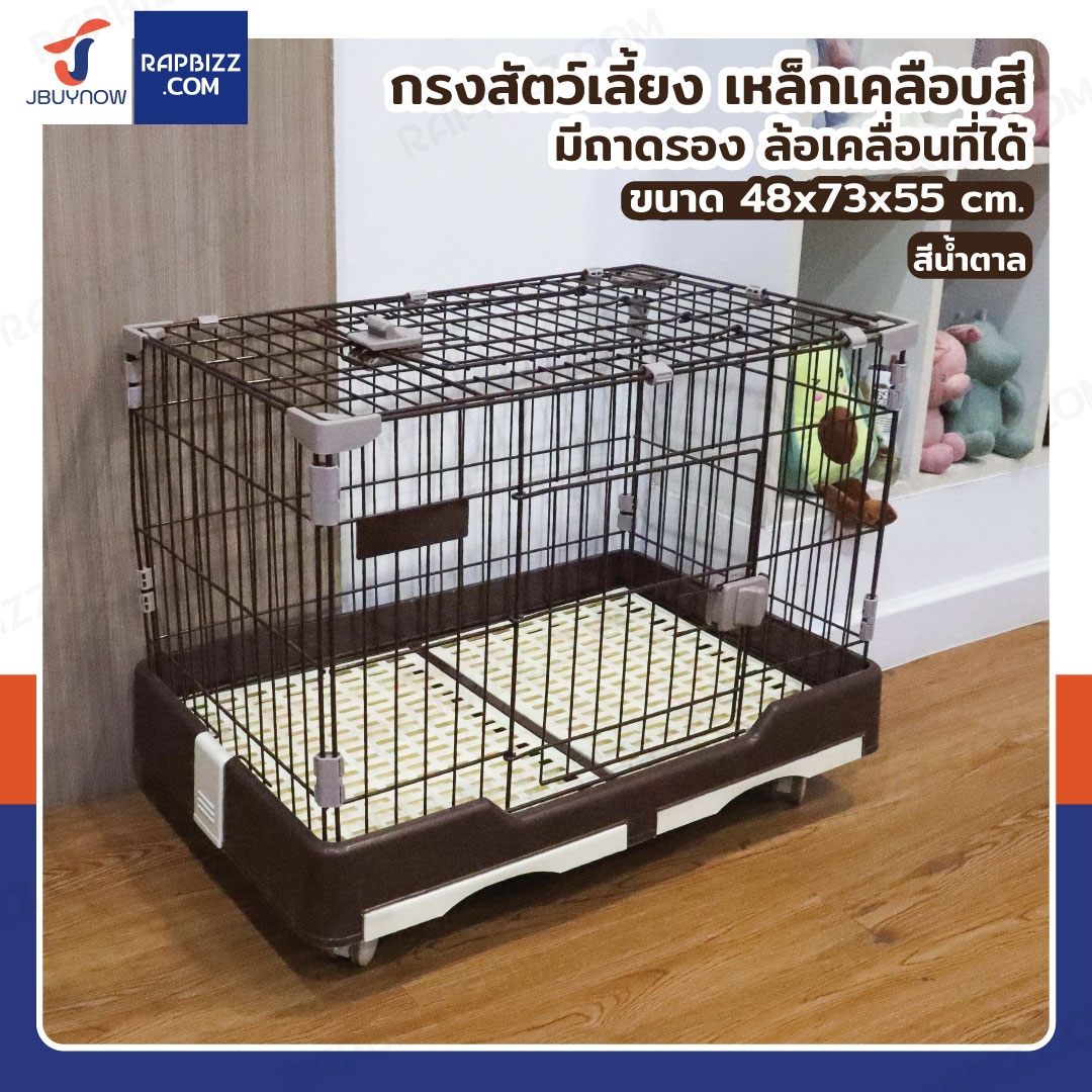 กรงสุนัข เหล็ก เคลือบสี มีถาดรองและล้อเคลื่อนที่ได้ 48x73x55 ซม. RT1908133