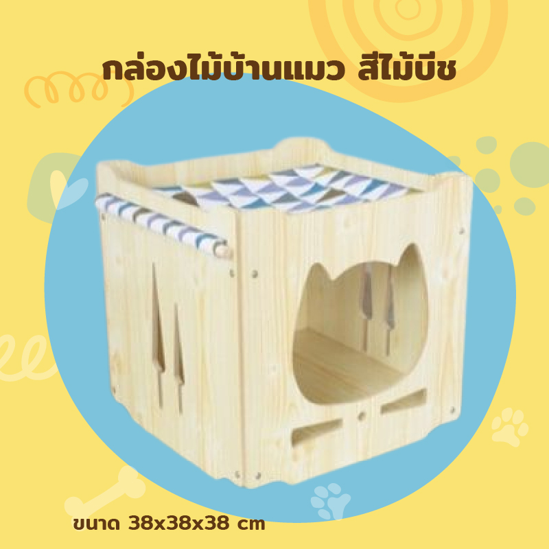 กล่องไม้บ้านแมว สีไม้บีช 38x38x38 ซม. PT618-1