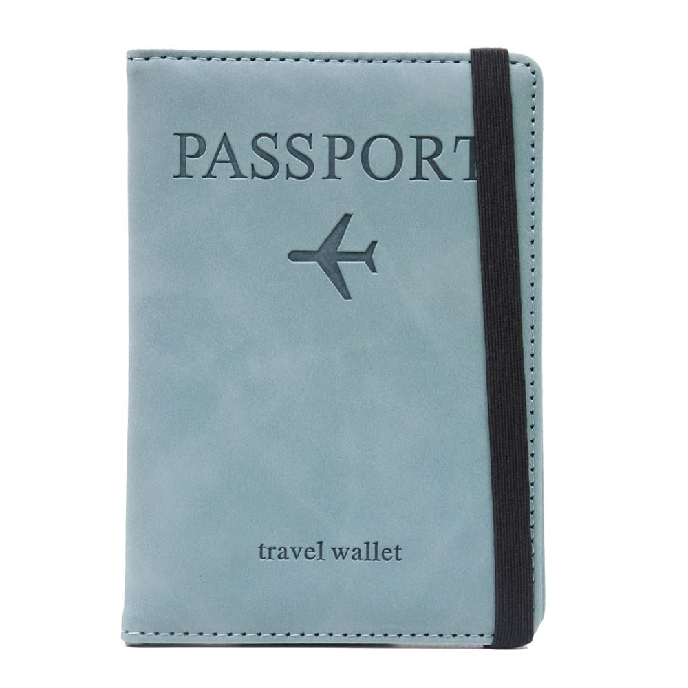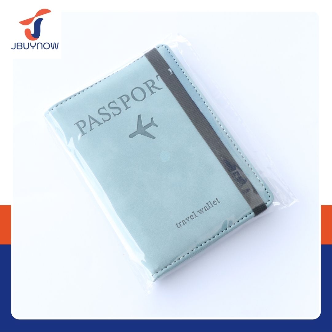 ปกพาสปอร์ต หนังPU(หนังกลับ) มีสายรัด 15x11 ซม. สีฟ้า RB230811-1LBLU
