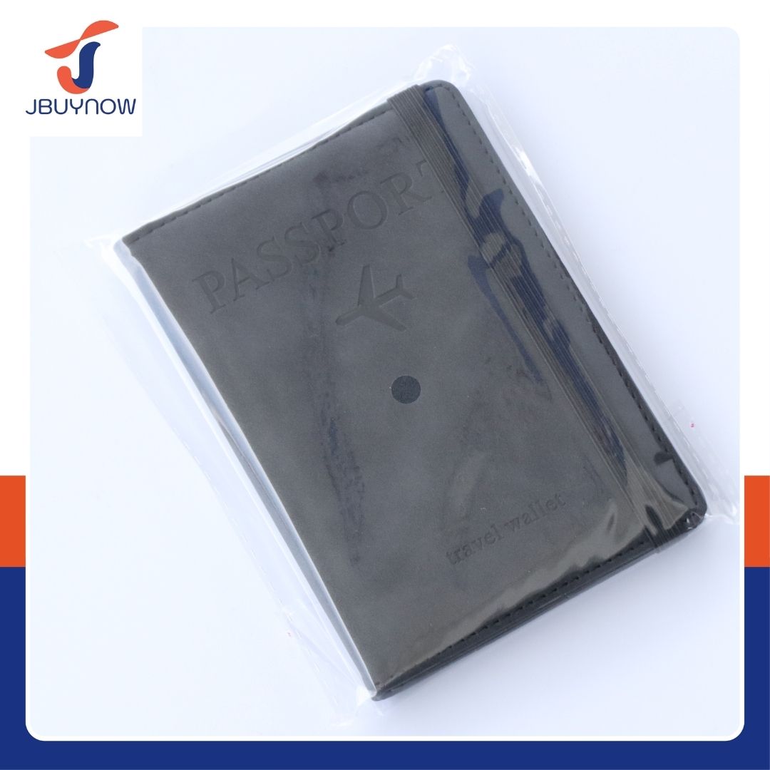 ปกพาสปอร์ต หนังPU(หนังกลับ) มีสายรัด 15x11 ซม. สีดำ RB230811-1BLA