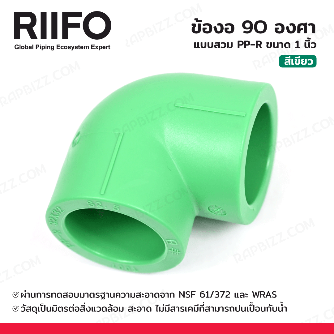 RIIFO ข้องอ 90 องศา แบบสวม PP-R ขนาด 1 นิ้ว สีเขียว 000160010