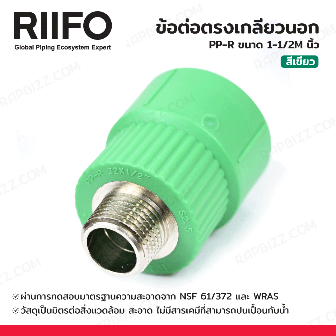 RIIFO ข้อต่อตรงเกลียวนอก PP-R ขนาด 1 นิ้ว-1/2M สีเขียว 000160012