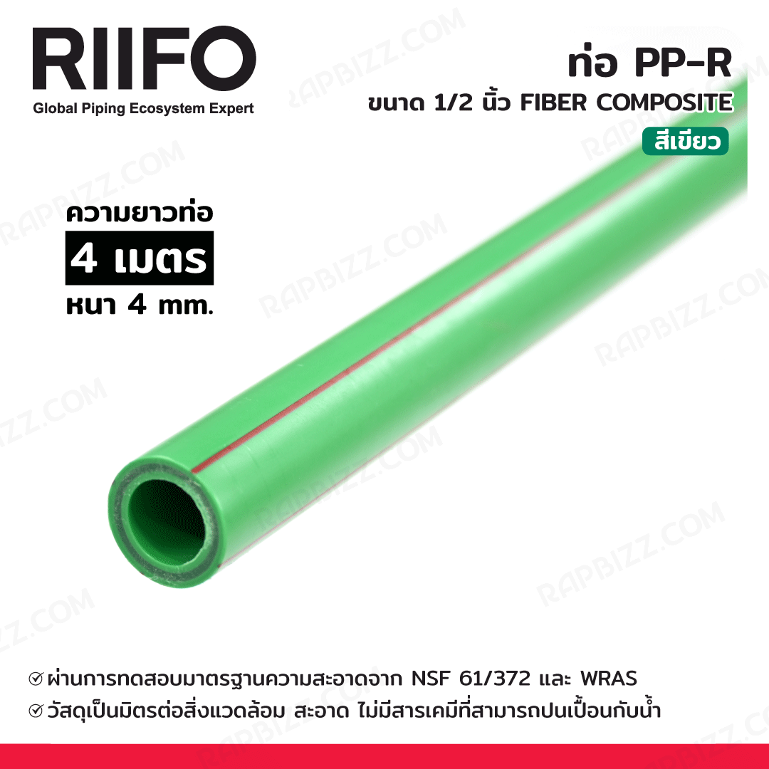 RIIFO ท่อ PP-R ขนาด 1/2 นิ้ว ยาว 4 เมตร สีเขียว FIBER COMPOSITE 000160007