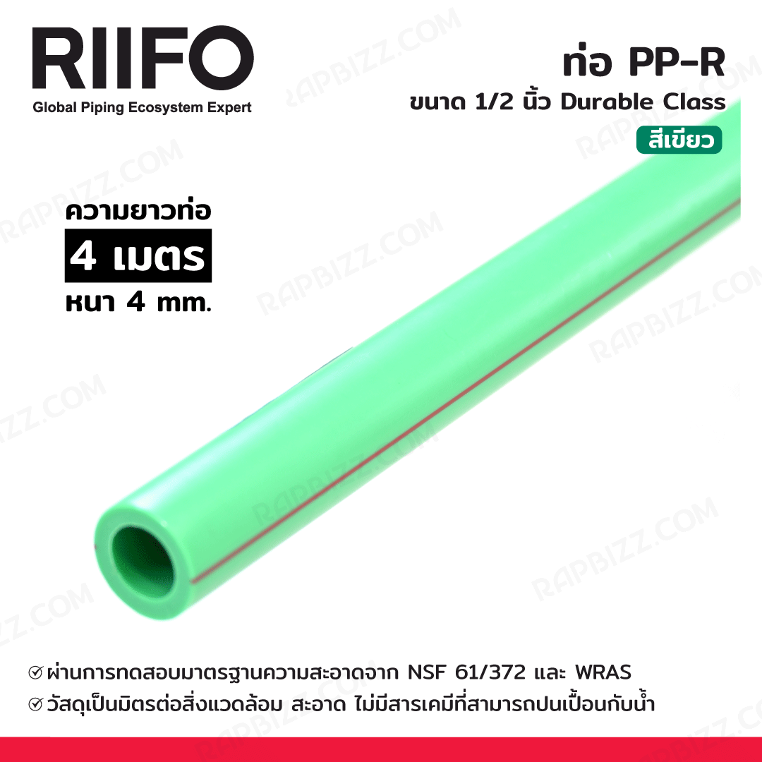 RIIFO ท่อ PP-R ขนาด 1/2 นิ้ว ยาว 4 เมตร สีเขียว DURABLE CLASS 000160004