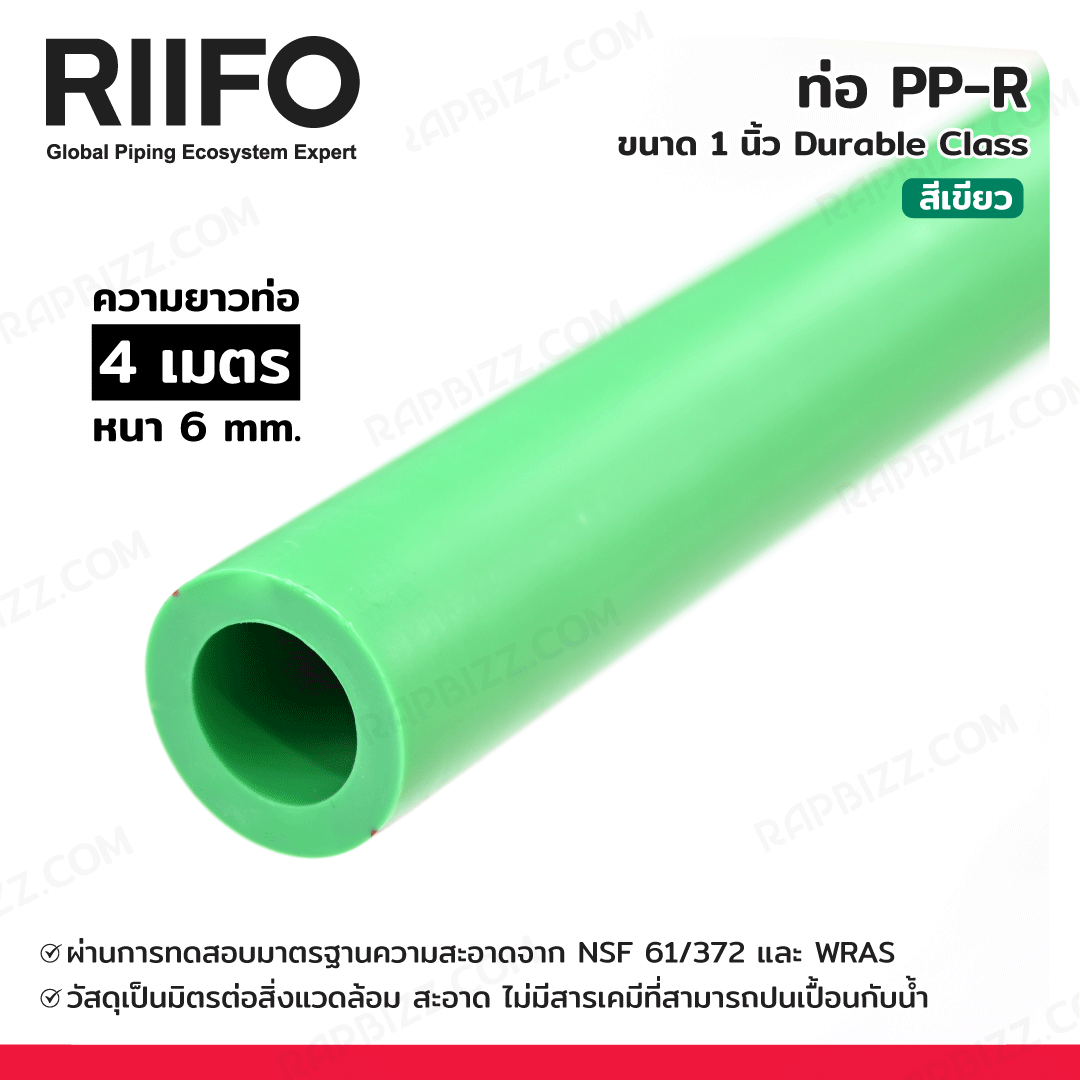RIIFO ท่อ PP-R ขนาด 1 นิ้ว ยาว 4 เมตร สีเขียว DURABLE CLASS 000160006