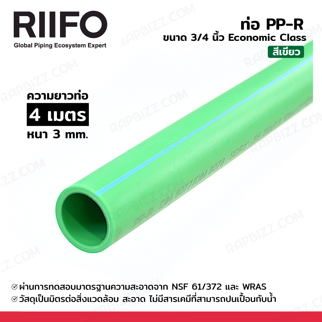 RIIFO ท่อ PP-R ขนาด 3/4 นิ้ว ยาว 4 เมตร สีเขียว ECONOMIC CLASS 000160002