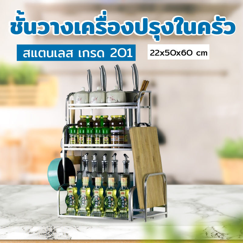ชั้นวางของ สแตนเลส ในห้องครัว 3 ชั้น 22x50x60 ซม. WWB001-3A