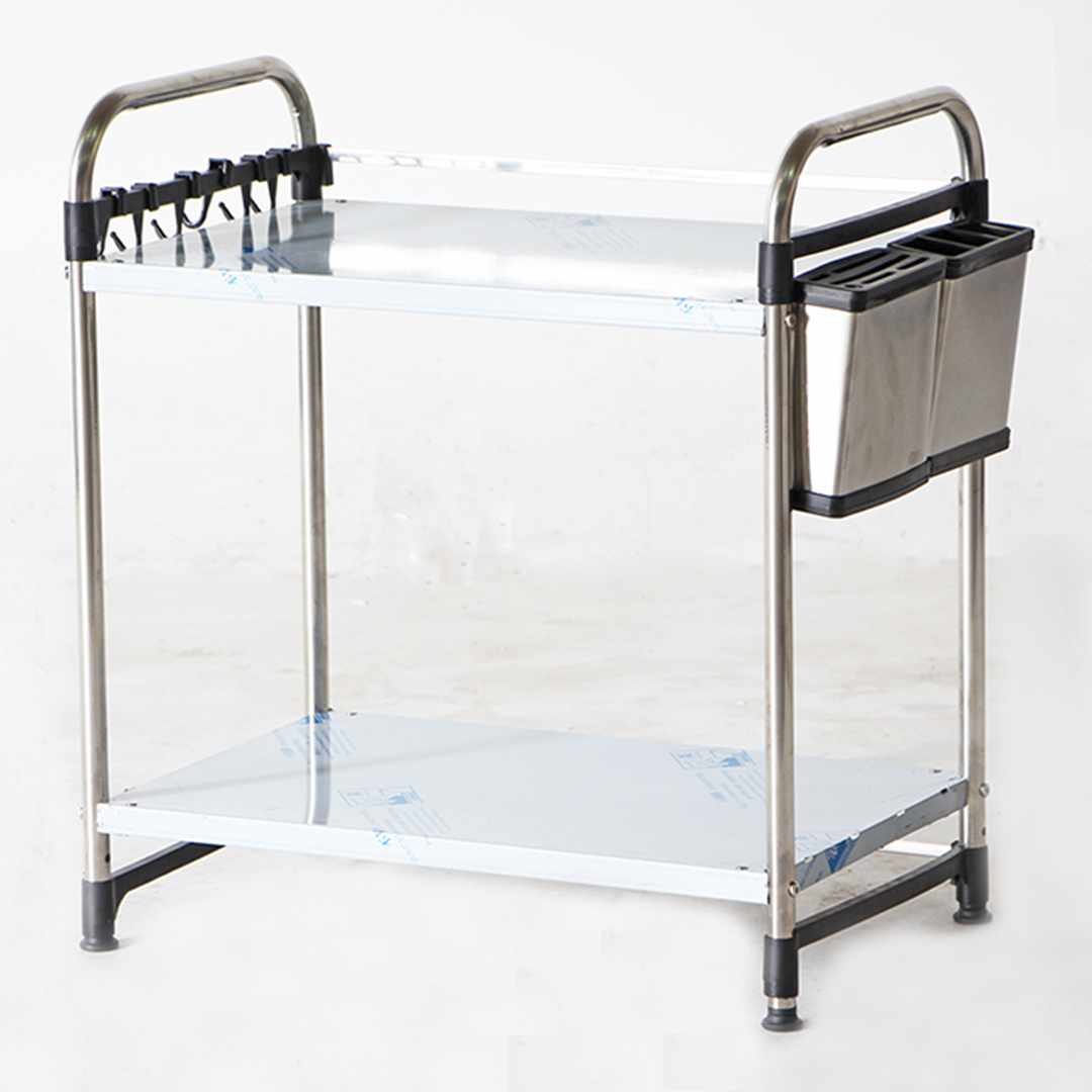 ชั้นวางของ สแตนเลส ในห้องครัว 2 ชั้น พร้อมที่เสียบมีด 35x60x75 ซม. ST200511-13