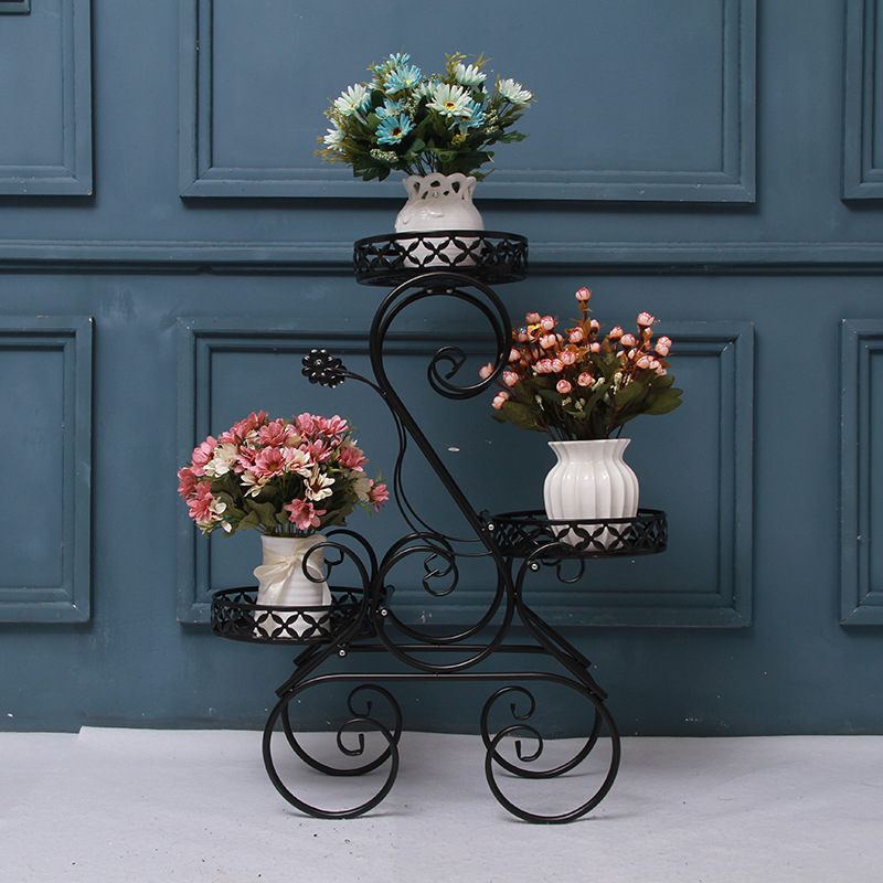 ชั้นวางกระถางดอกไม้ เหล็ก 3 ชั้น 49x28x82 ซม. สีดำ ST0531-23BL